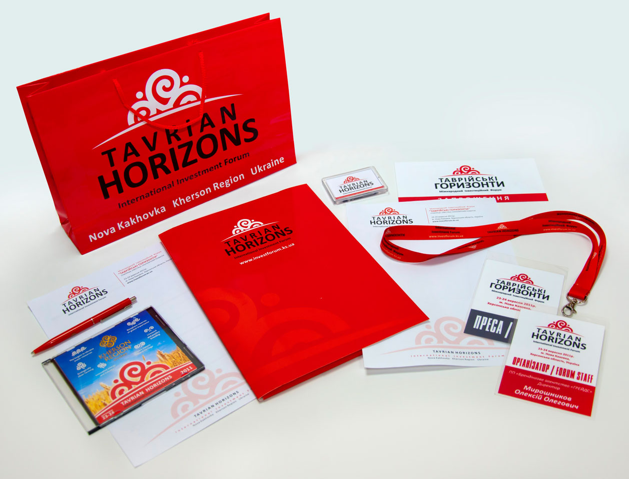 Для международного инвестиционного форума Брендинговым агентством «ГРЕЙДС» (дизайнеры: Алексей Мирошников, Константин Ястребов, Юрий Подоба) был разработан полный набор рекламно-презентационной продукции, элементов навигации, наружной рекламы и сувениров.